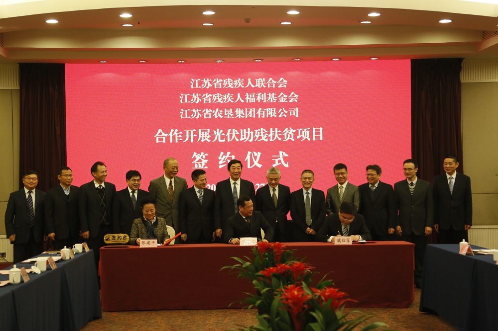 27日上午,江蘇省農(nóng)墾集團(tuán)有限公司與江蘇省殘疾人協(xié)會(huì)、江蘇省殘疾人福利基金會(huì)舉行了光伏扶貧助殘項(xiàng)目簽約儀式。江蘇貧困殘疾人家庭將有穩(wěn)定收益,年均增收近3000元。
